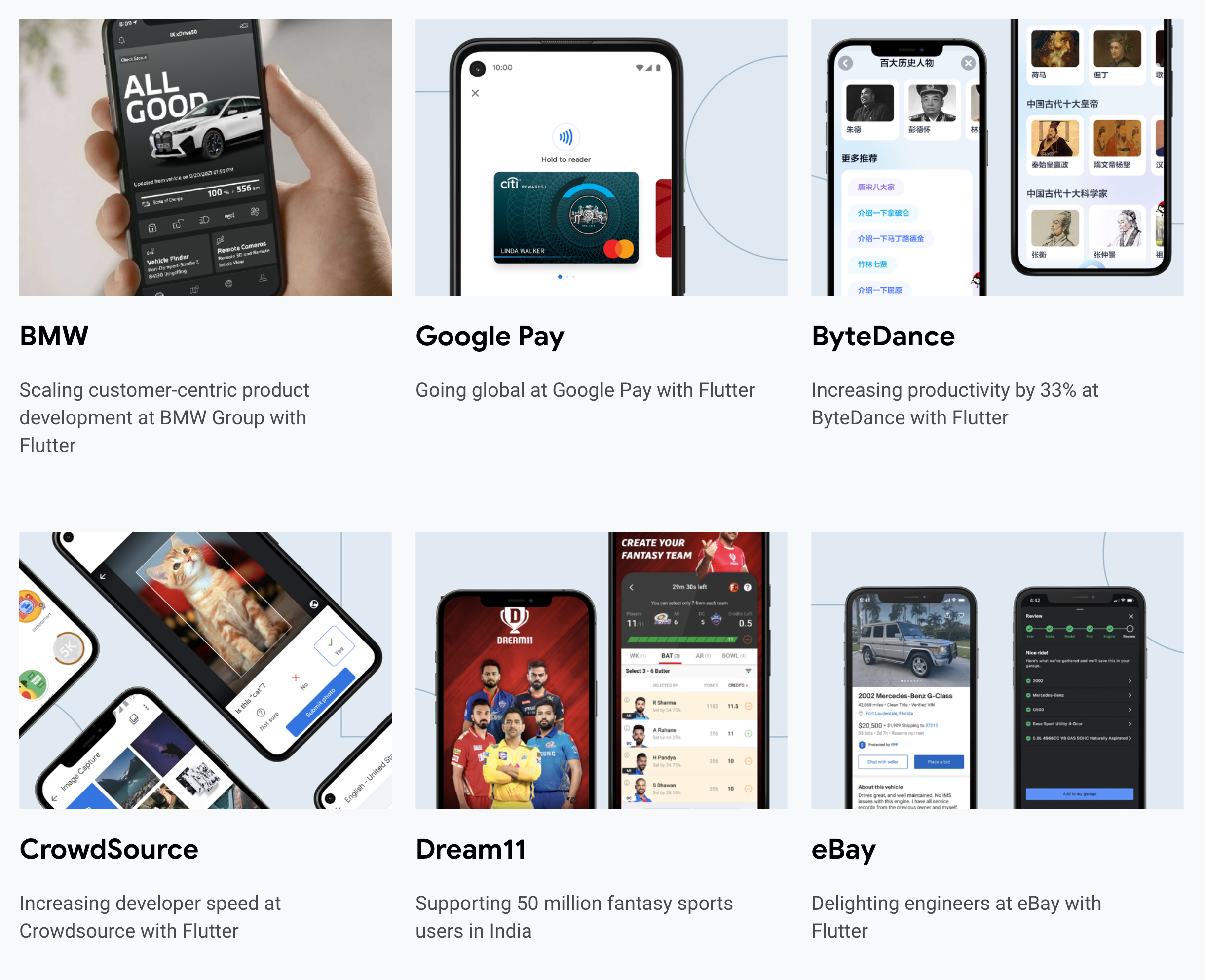 만약, 이러한 성과가 Google Pay 앱 개발팀만 겪었다면, 그것은 단순히 홍보용이었을 것입니다. 구글의 서비스 중에 플러터를 적용하여 비슷한 성과를 얻은 케이스들은 아래와 같습니다.