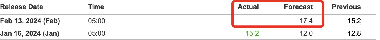 ▷ 미국 1월 소비자물가 (일정 링크) ☆☆☆