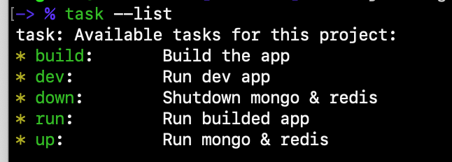 다음으로 이전 시간에 다룬 Taskfile 을 이용해 서비스를 올렸다 내렸다 할 수 있도록 설정합니다.