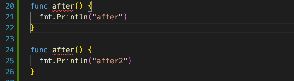 after 라는 함수를 init 처럼 두번 선언했습니다.