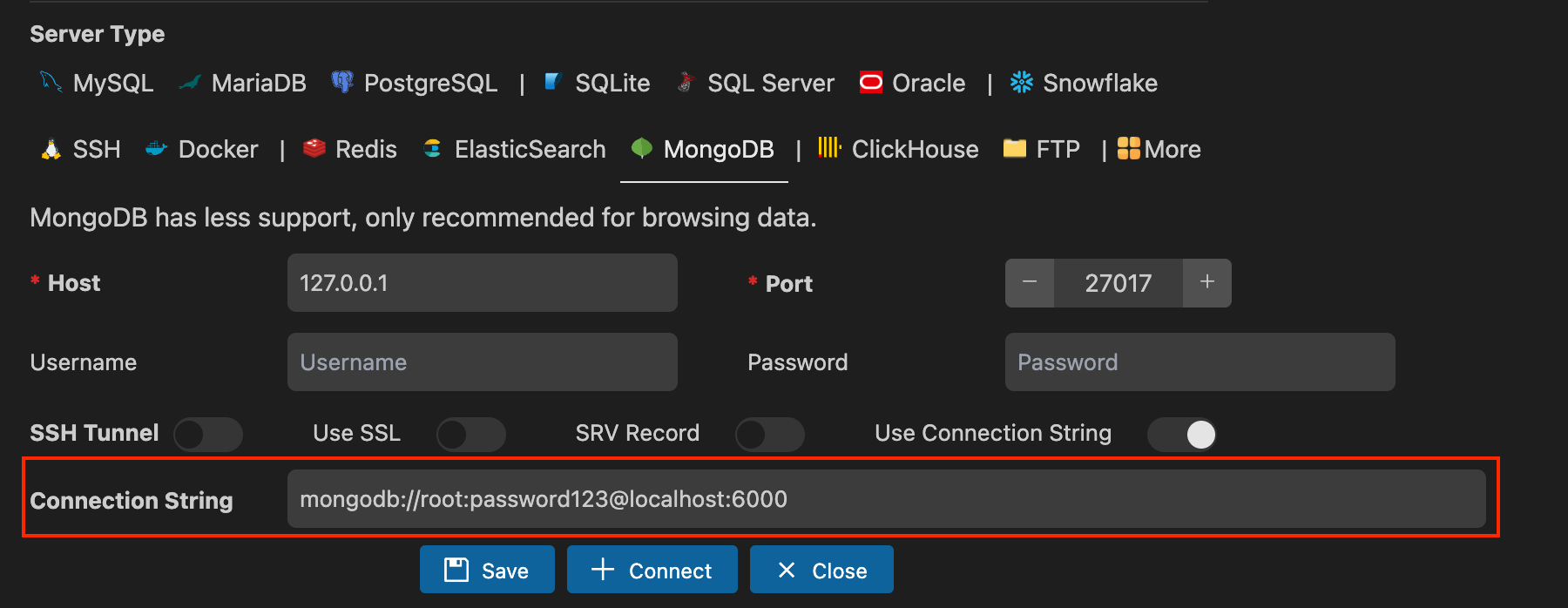 mongodb://root:password123@localhost:6000