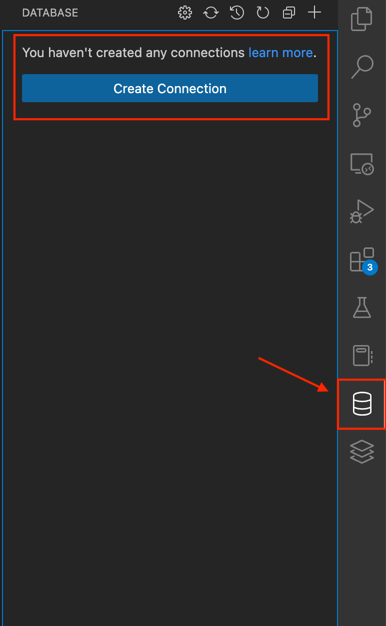 아이콘을 클릭하면 확장 패널이 열리고 검색 입력에 "MySQL" 이라고 타이핑하고 엔터를 누릅니다.