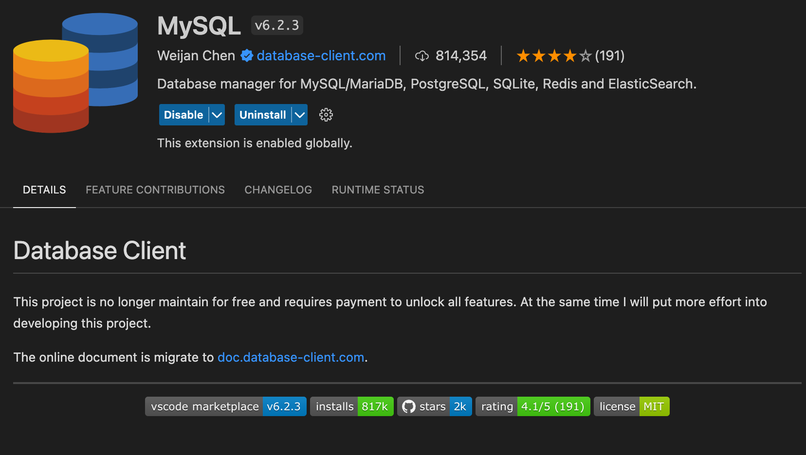 Extension for Visual Studio Code - Database manager for MySQL/MariaDB, PostgreSQL, SQLite, Redis and ElasticSearch.
