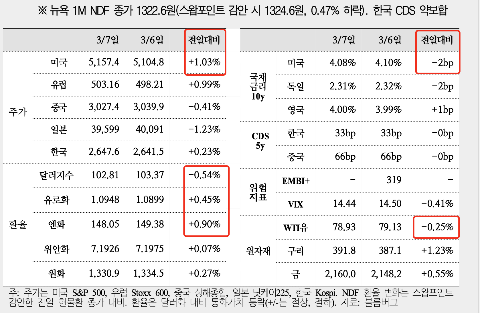 ✅ 미국 S&P500, +1.0% / 미국 달러지수, -0.5% / 미국 10년물 국채 금리 -2bp / 유로화, 엔화 각각 +0.5%, +0.9%