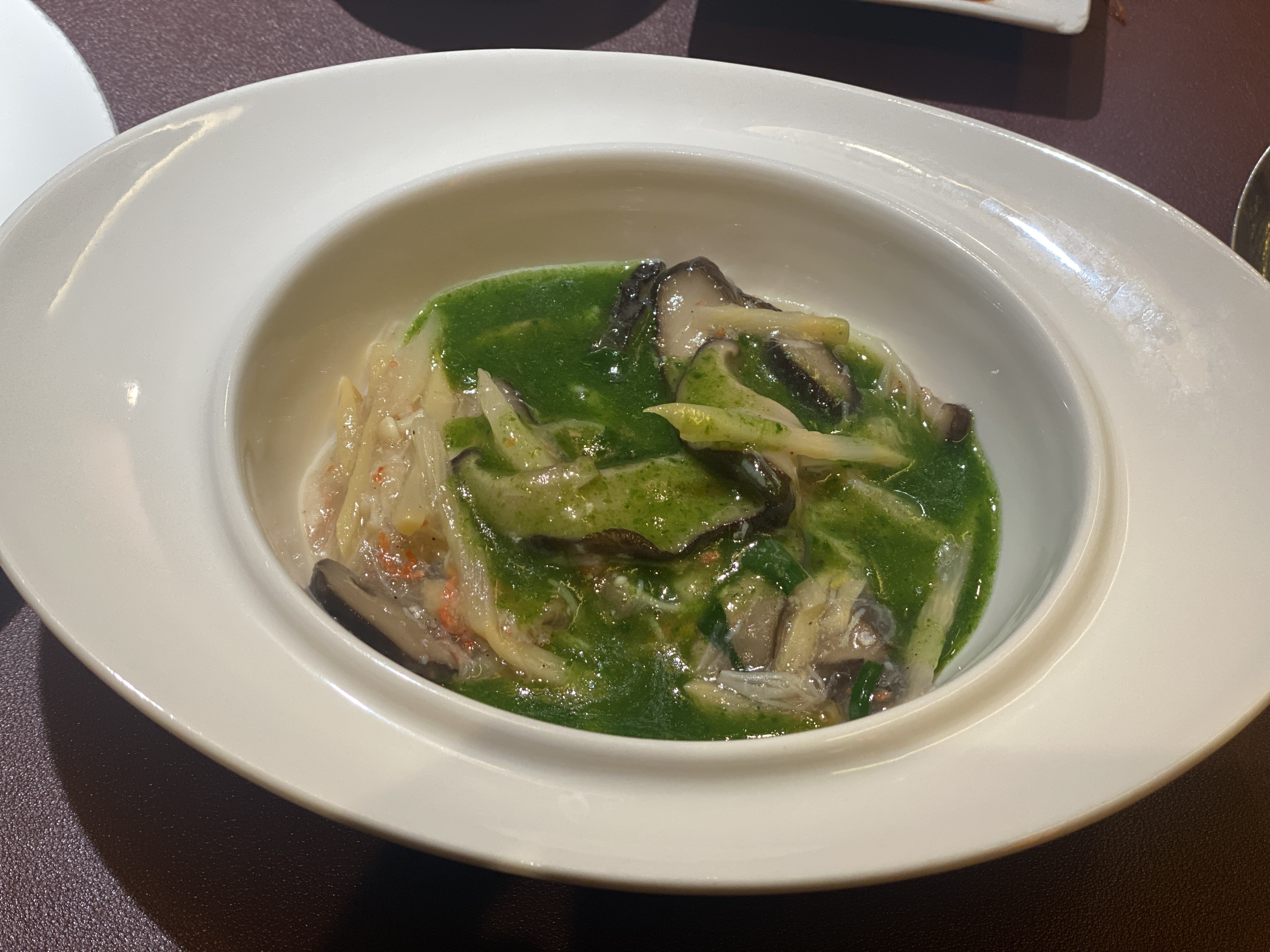 다음으로 시금치 게살유산슬이 나옵니다. 보통 참치집에 가면 참치를 먹기전에 속을 달래는 죽이 나옵니다.