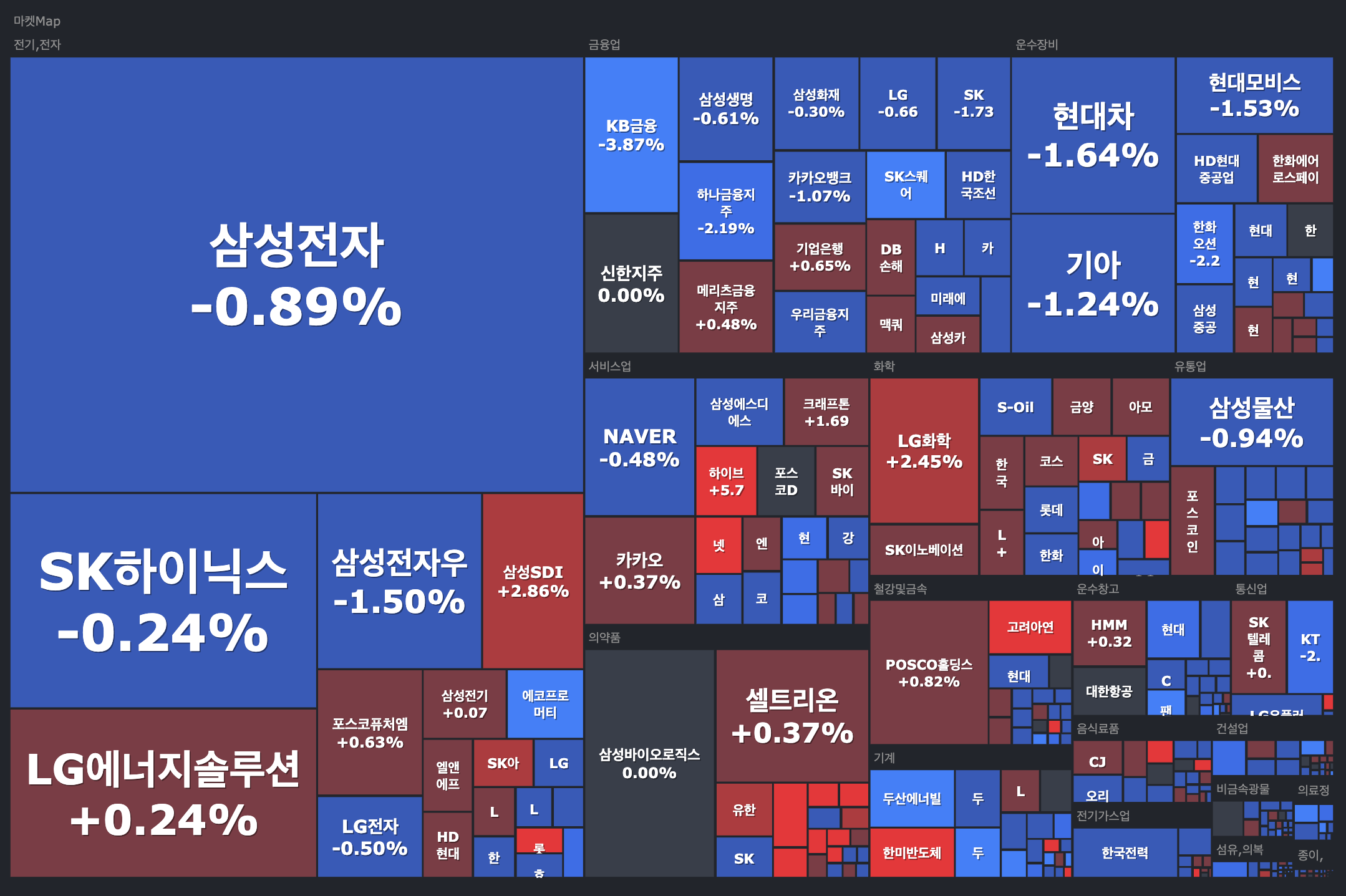 📉 주가 하락 [코스피 2,737.6(-11.0p, -0.4%), 📈 코스닥 913.7(+9.7p, +1.1%)]