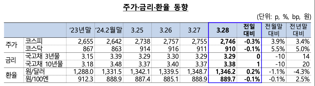 24.03.28 장마감 시황, 미 PCE 발표 경계감으로 한국장 하락 마감