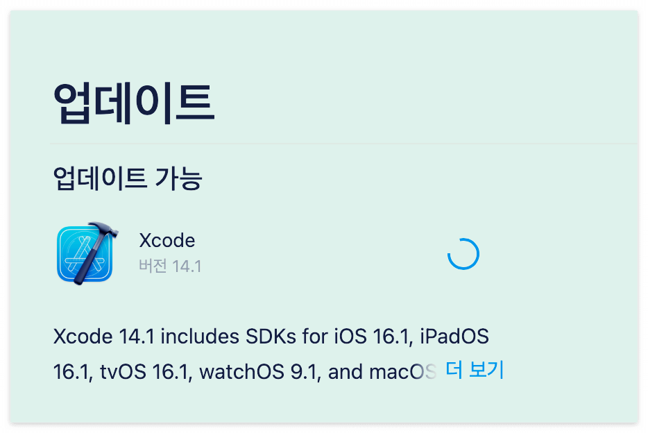 혹시 Xcode 버전을 OS 업데이트를 하면서 구버전으로 두진 않았나요? 메이저 버전의 OS 업그레이드를 한 경우, App Store 에서 Xcode 업데이트를 기다리고 있을 수 있습니다. Xcode 를 업데이트 해주세요!