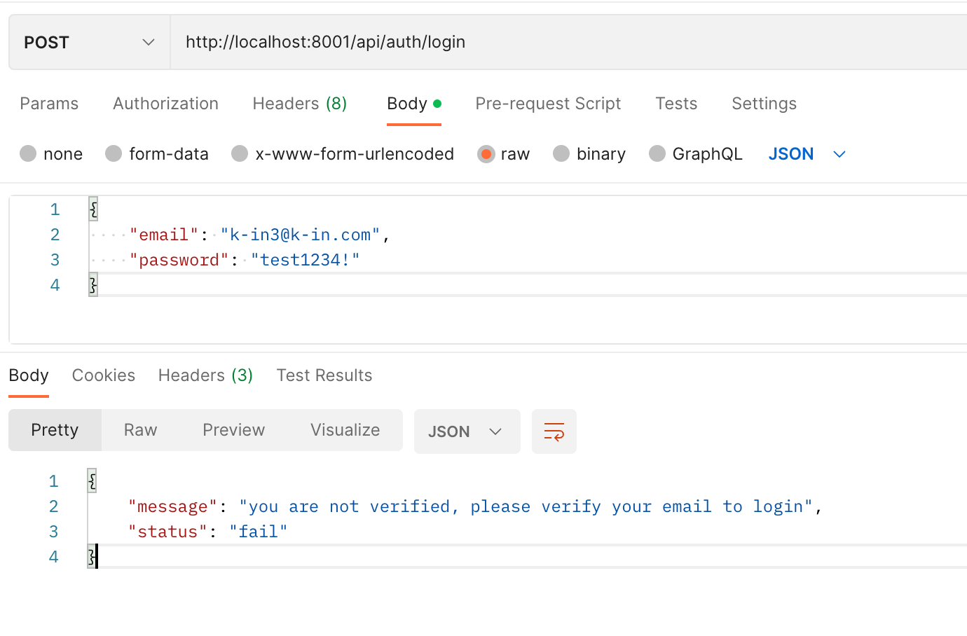 gin.H{"status": "fail", "message": "could not verify email address"},
