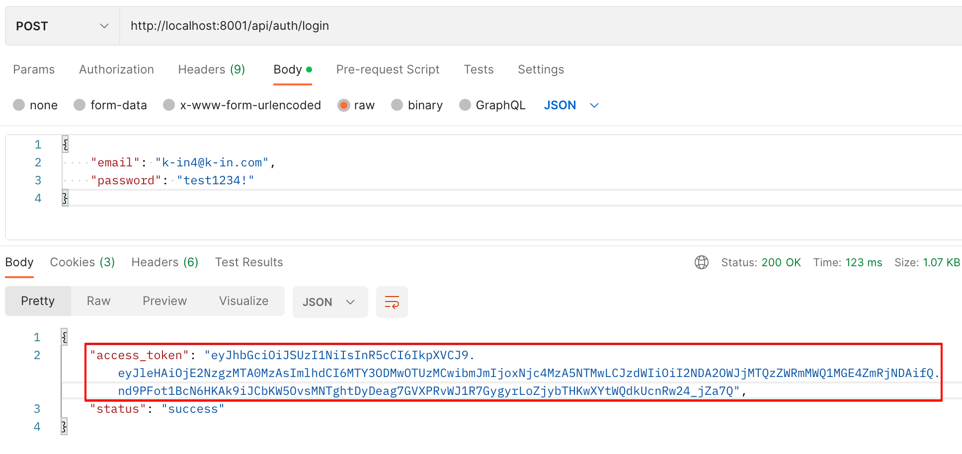 인증된 사용자 계정을 이용해 로그인을 하면 아래와 같이 access_token 이 출력됩니다.