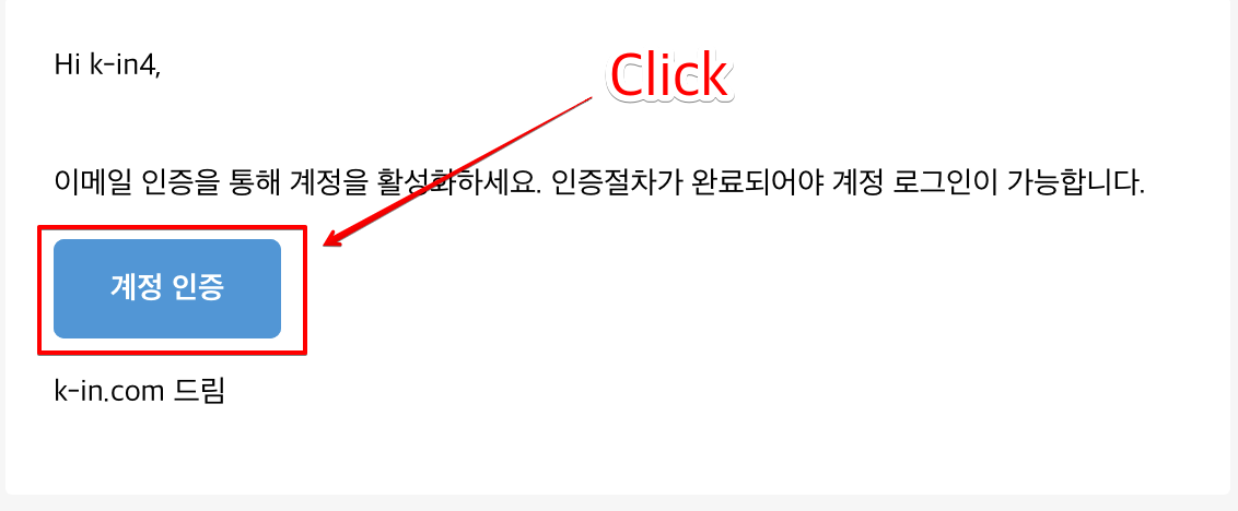이제 발송된 이메일 본문에 버튼을 클릭하여 인증 처리가 잘되는지 확인해봅시다.