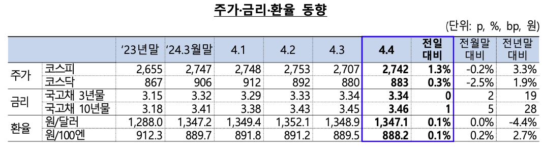 📈 장기금리 상승 [국고채(3년) 3.34%(+0bp), 국고채(10년) 3.46%(+1bp)]