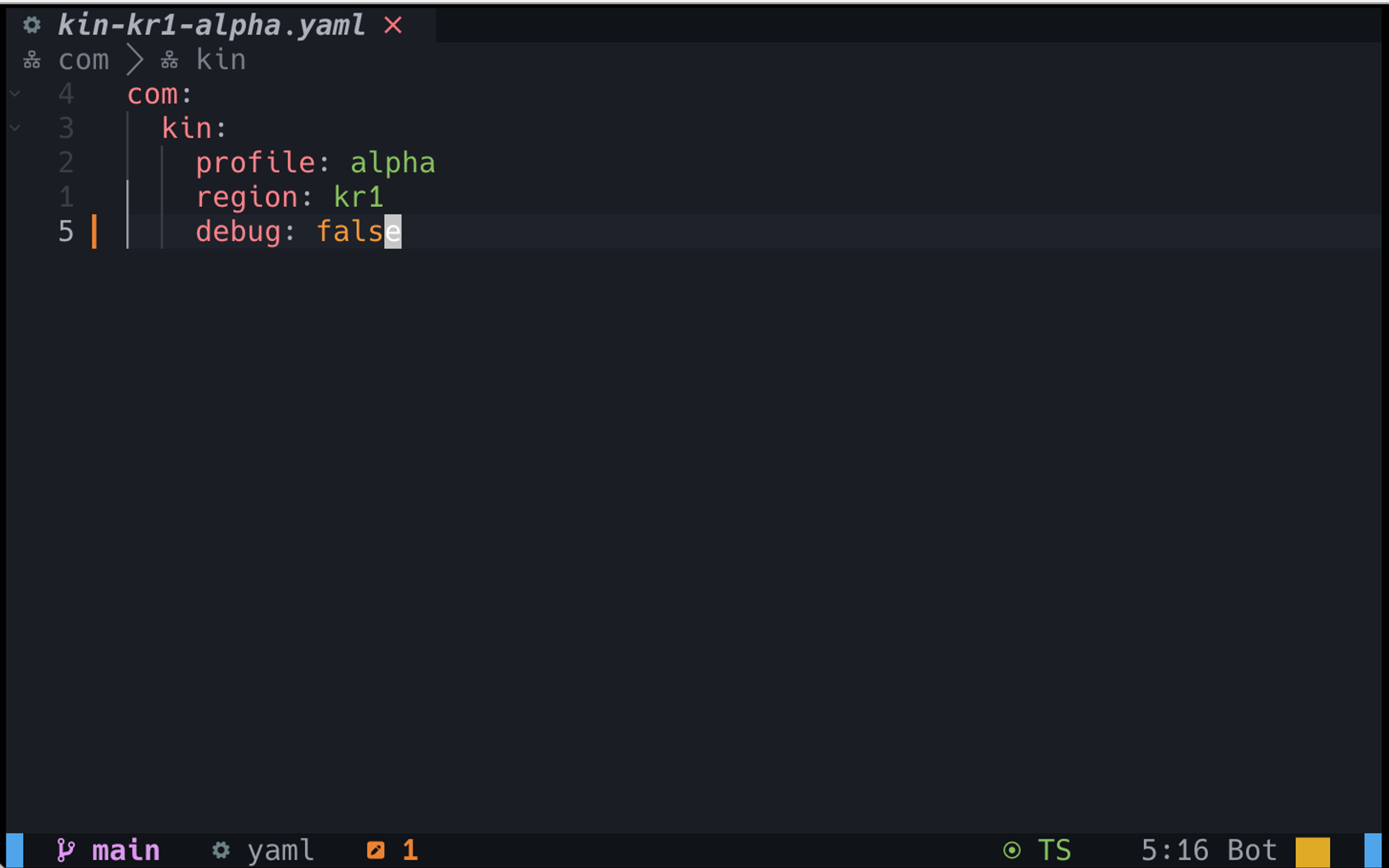 kin-kr1-alpha.yaml 파일에 debug 정보를 추가해줍니다.