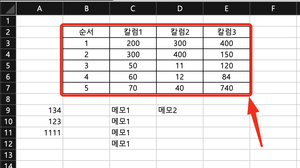 - 1행을 건너뛰고 2행부터 테이블이 시작한다.