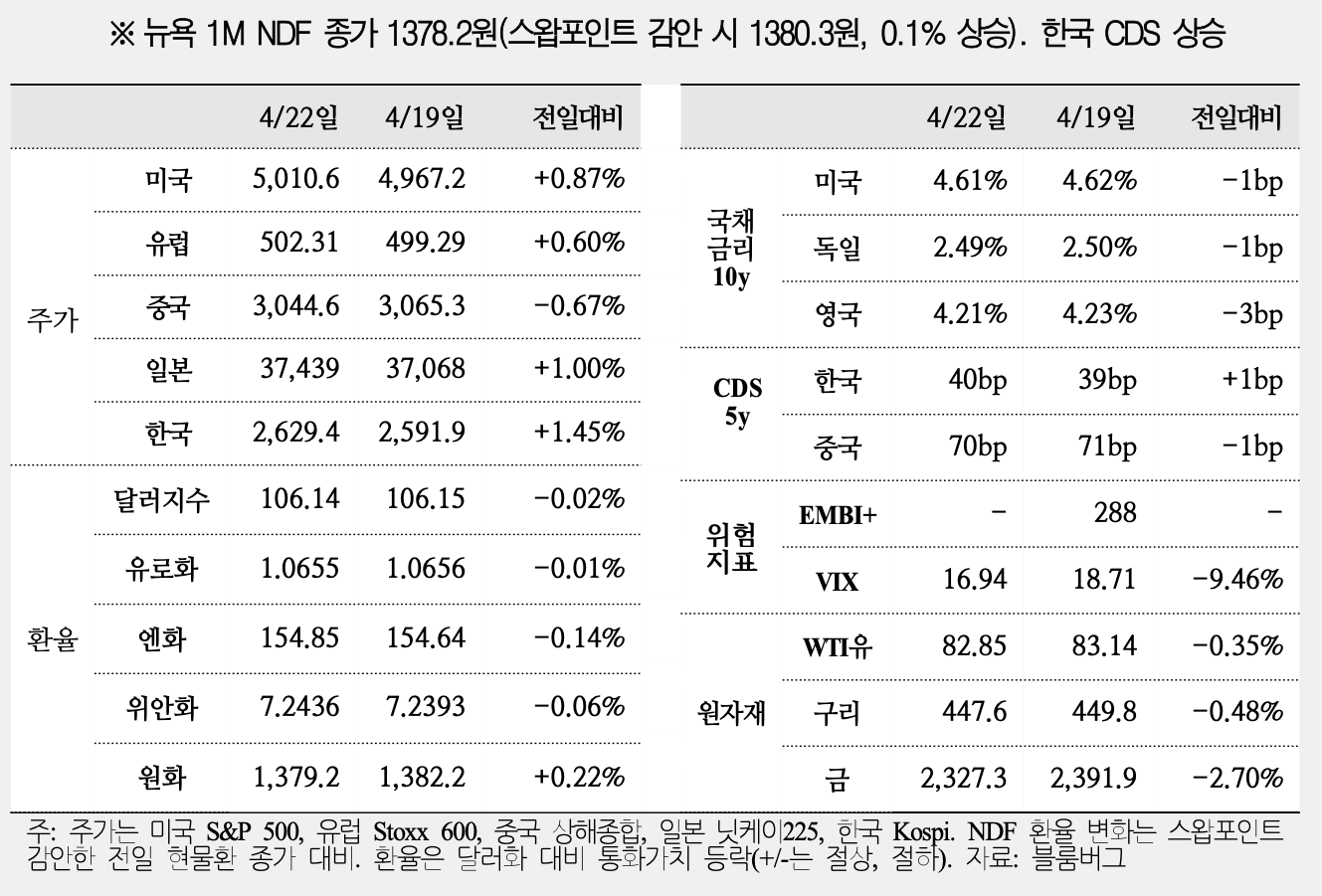 이상으로 24/04/23 국제금융속보 요약이었습니다.