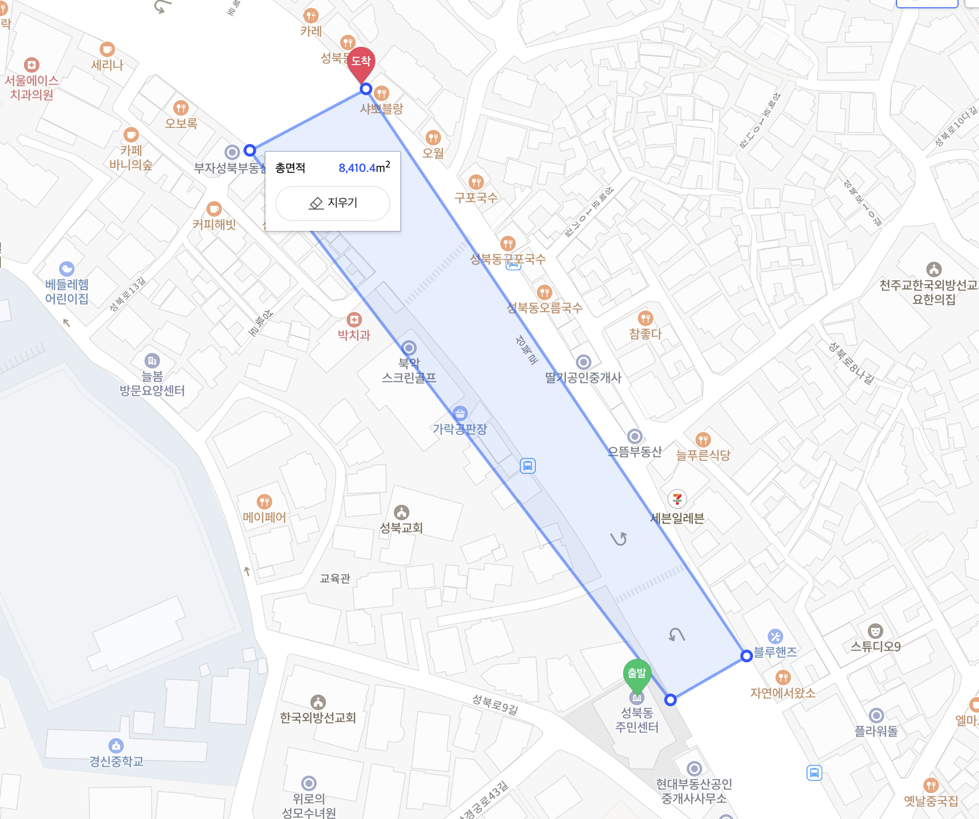 장소는 성북동 주민센터부터 홍익중고 앞 버스정류장까지입니다.