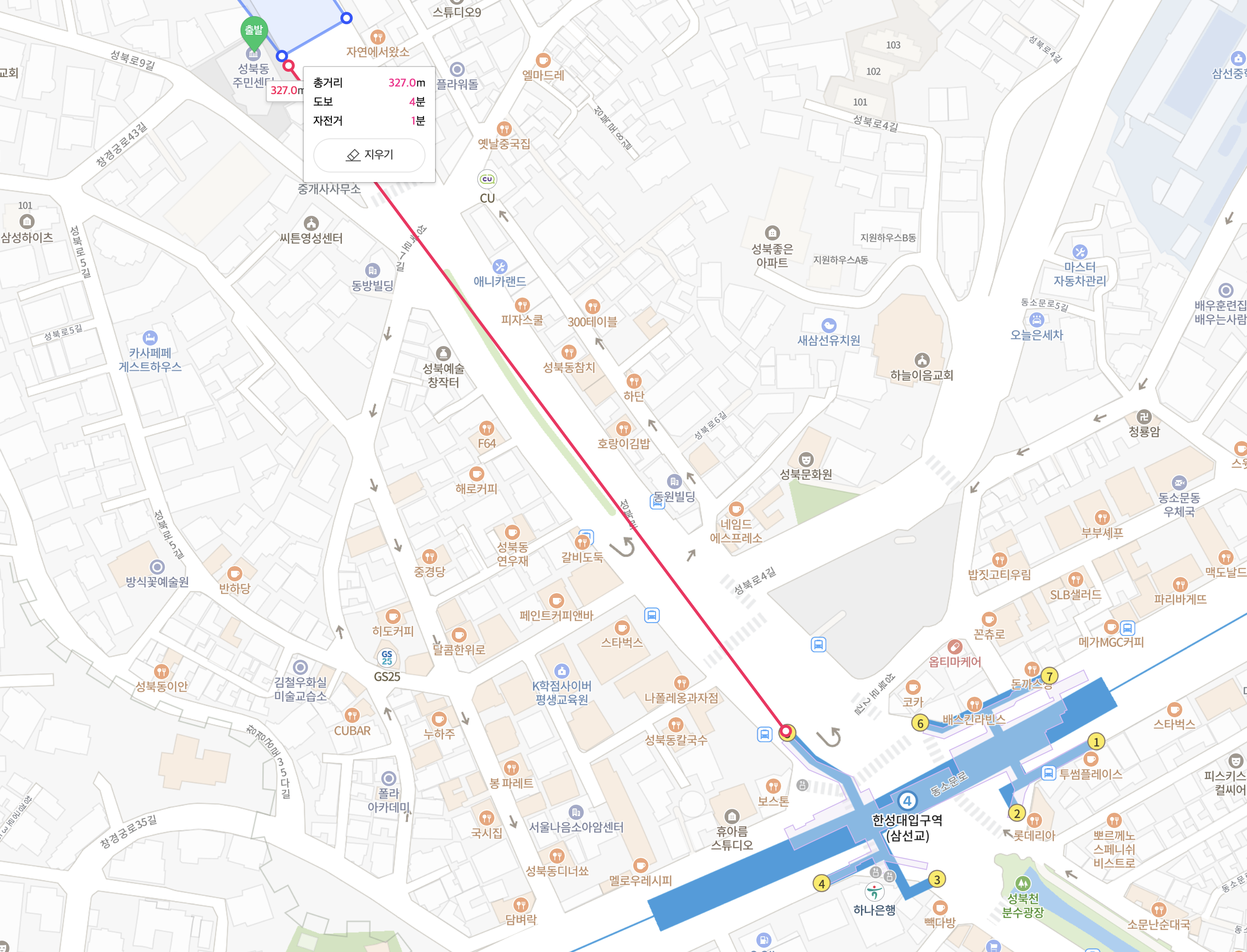 네이버 지도를 통해 4호선 한성대입구역을 도착으로 지정하신 뒤에 찾아오시면 됩니다.