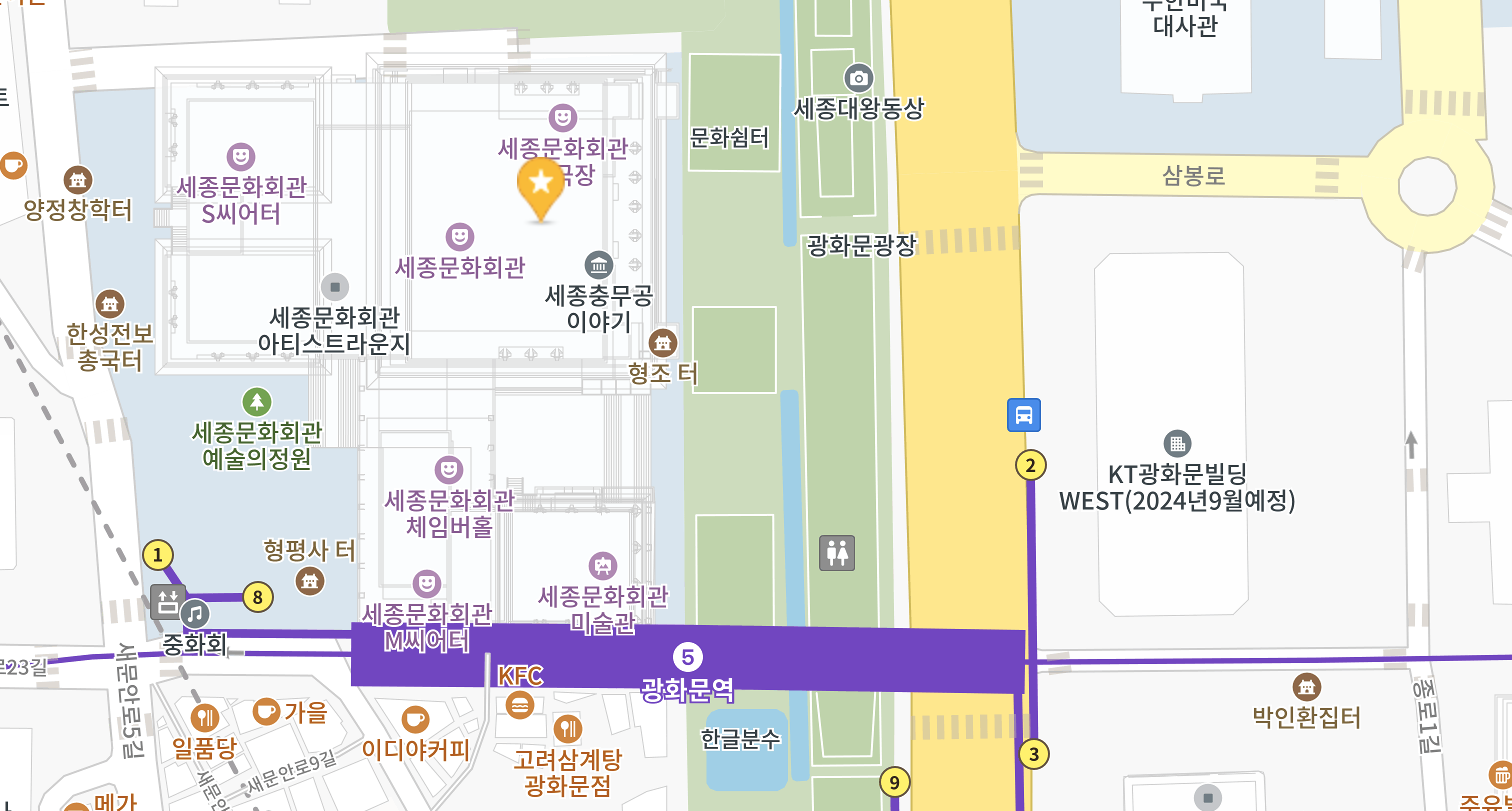광화문역 1, 2, 8번 출구를 통해서 도보로 10분 거리에 있습니다.