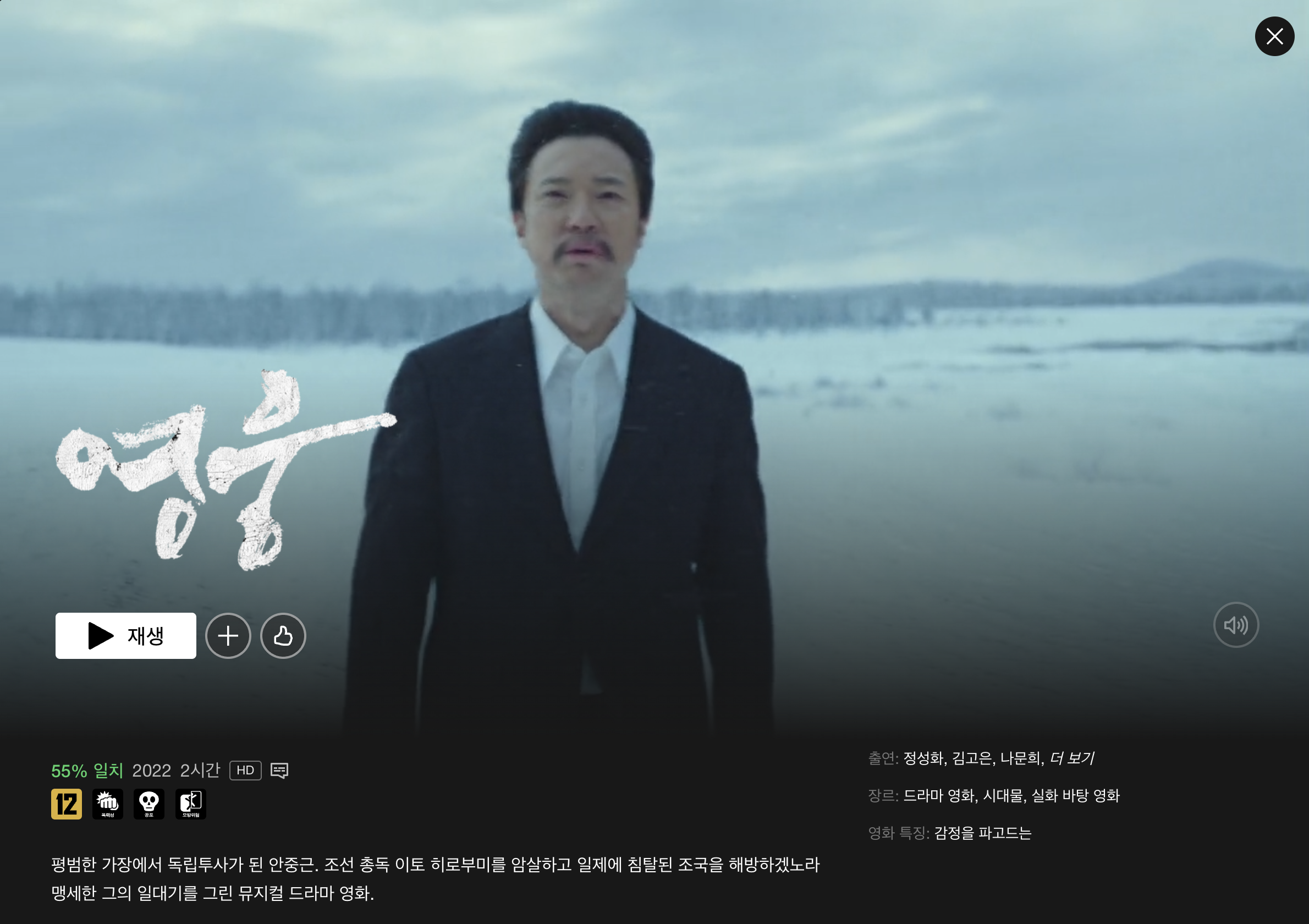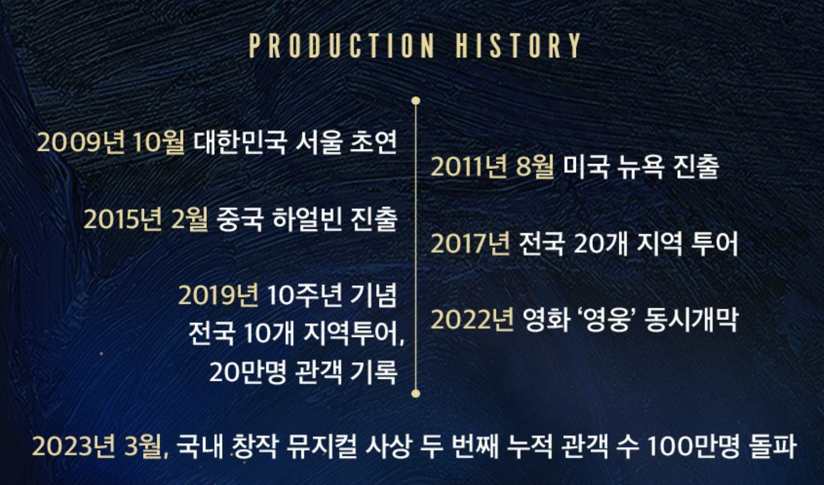 뮤지컬 <영웅> 은 23년 3월 누적관객수 100만명을 돌파하였습니다.