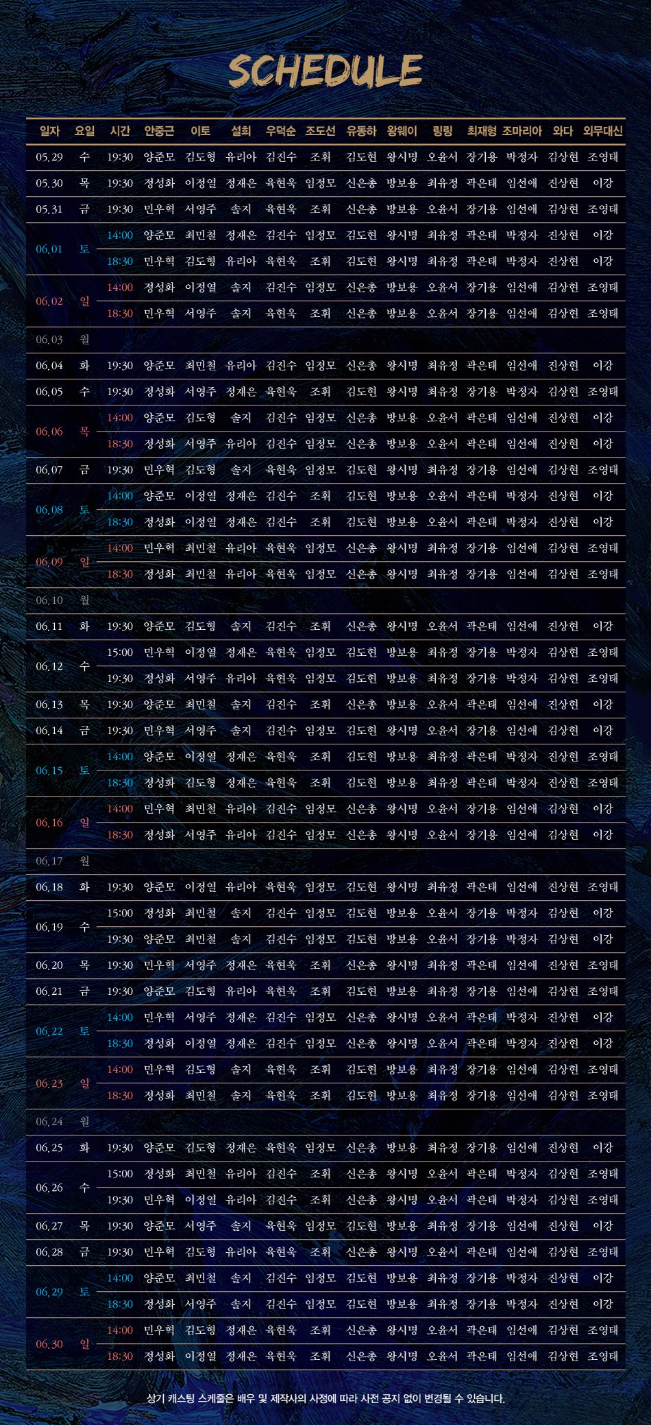 뮤지컬을 즐기려면 스케쥴 표는 필수!