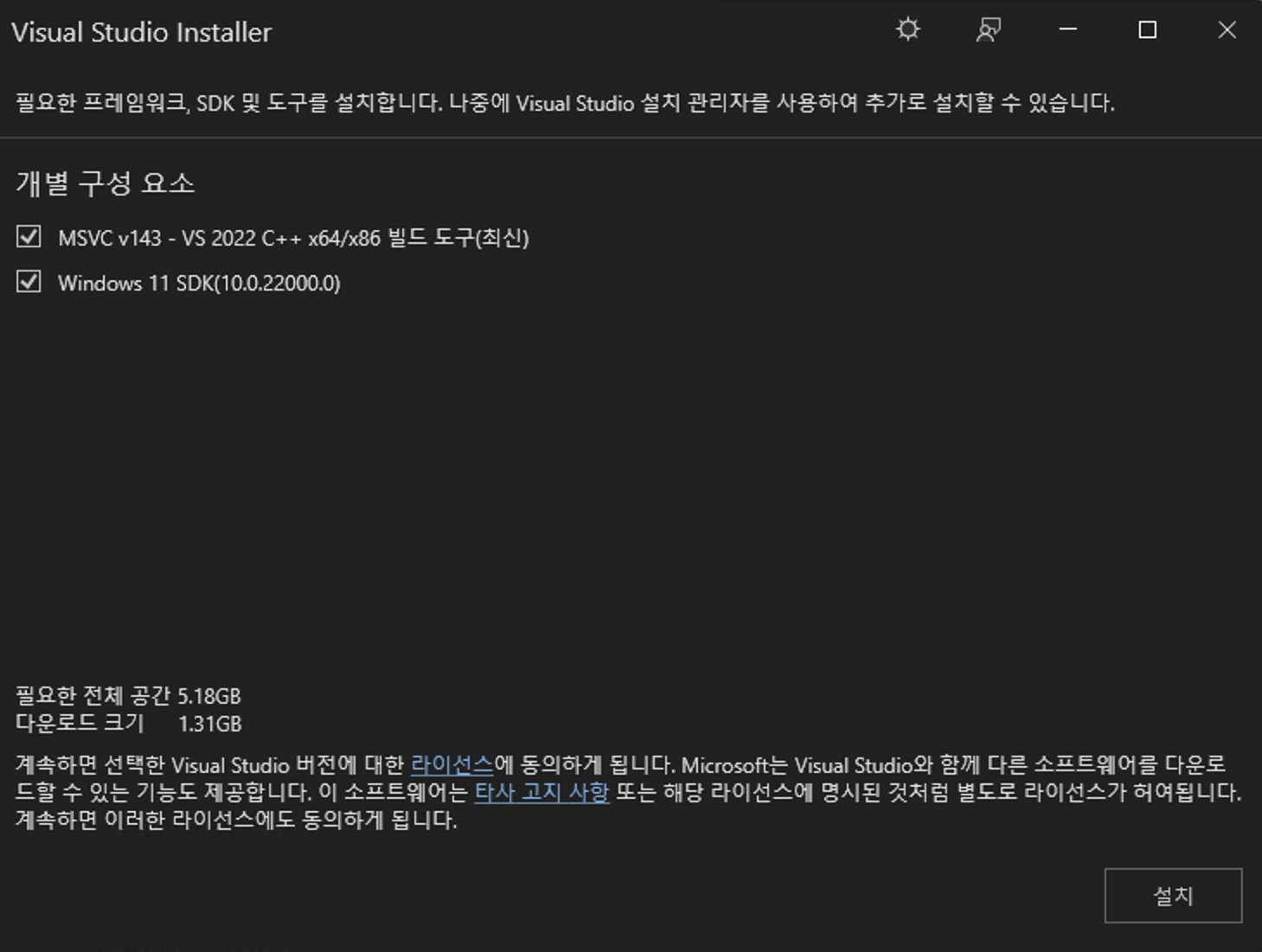 올바른 설치를 위해서는 Visual Studio C++ Build tools 가 필요합니다. 또한, 윈도우의 리눅스 서브시스템(WSL)에서도 간편하게 설치하여 사용할 수 있습니다. 설치를 위해 EXE 실행 파일을 다운로드 합니다. 64-BIT 를 선택해서 다운로드 합니다.