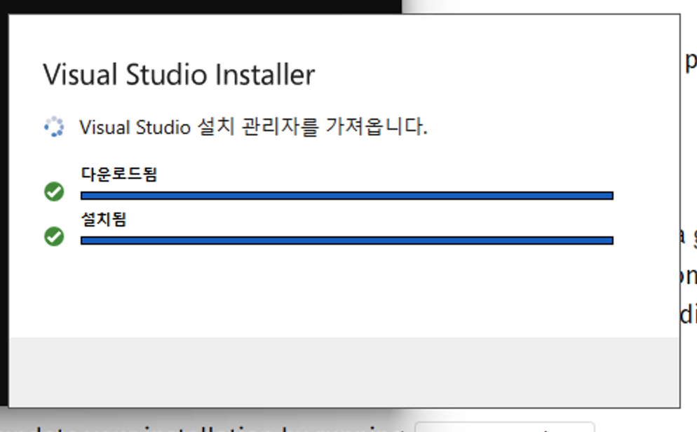 설치 프로그램을 다운로드 받았다면 곧바로 실행할 경우 아래와 같은 창이 출력됩니다. 이는 Visual C++ 이 설치되지 않아 출력되는 창으로 1, 2, 3 보기 중에 원하는 설치 옵션을 선택합니다. Visual C++ Pre-requisites 를 설치하기 위해서는 하드디스크 용량에 5.2GB 정도의 여유가 있어야합니다. Visual Studio Installer 는 설치에 다소의 시간이 소요되므로 따뜻한 차 한잔 내리면서 여유롭게 기다려야 합니다.