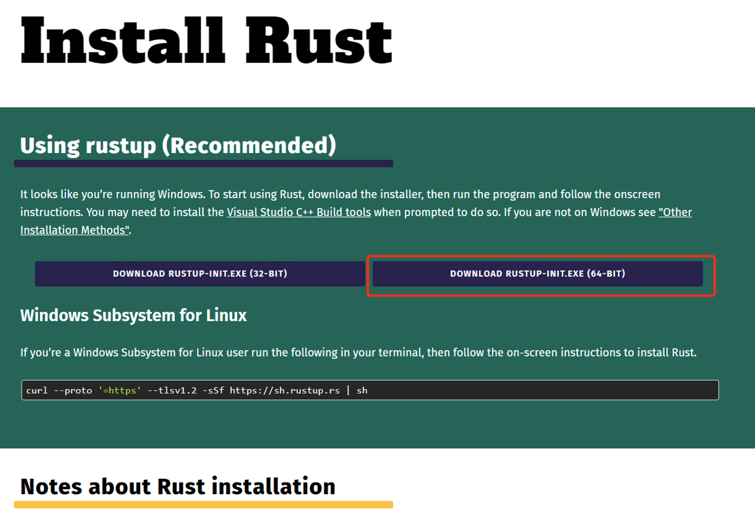 러스트는 리눅스, 윈도우 등 어떤 운영체제에서도 개발이 가능한 언어입니다. 아래의 러스트 공식 홈페이지를 통해서 설치 프로그램을 다운받아 윈도우 환경에 개발환경을 구축할 수 있습니다.