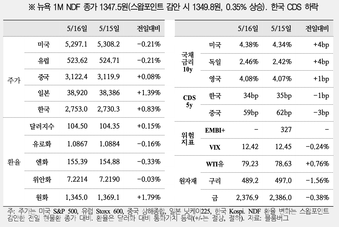 이상으로 24/05/17 국제금융속보 요약이었습니다.