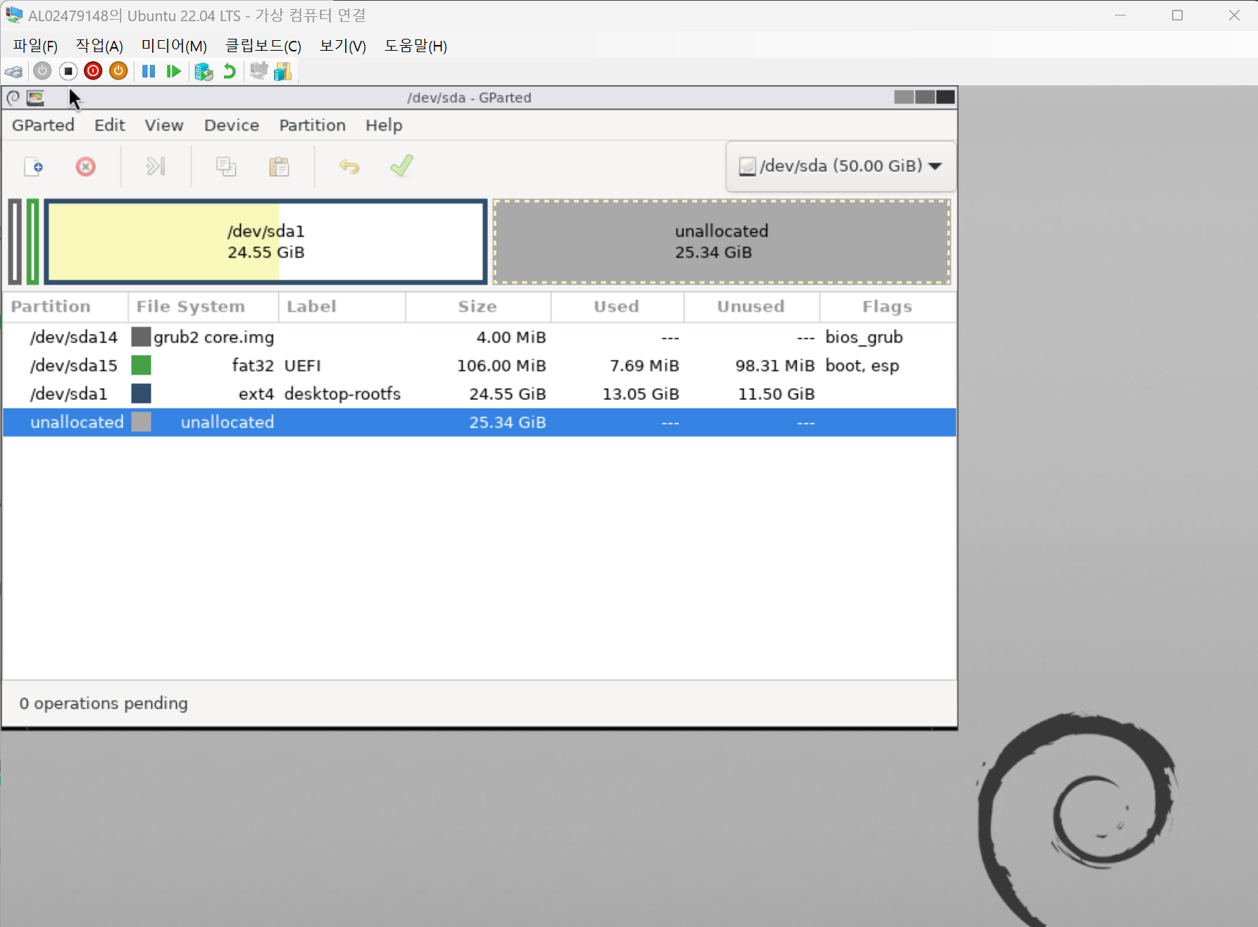 그러나 실제 Ubuntu 의 용량은 늘어나지 않음을 확인할 수 있습니다.