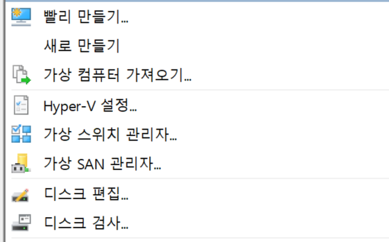 Hyper-V 를 처음 사용하게되면 보통 빨리 만들기 기능을 통해 이미지를 불러옵니다. 이 과정에서 세부적인 설치 과정이 생략되게 됩니다.