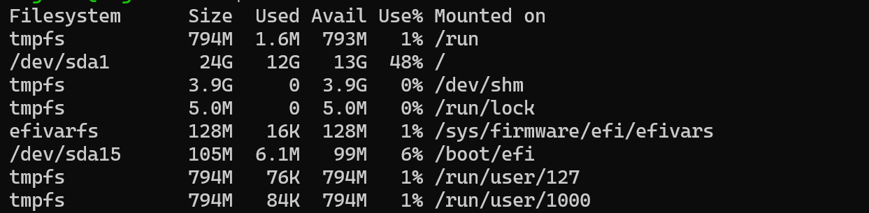 /dev/sda1 11G 4,7G 5,8G 45% /