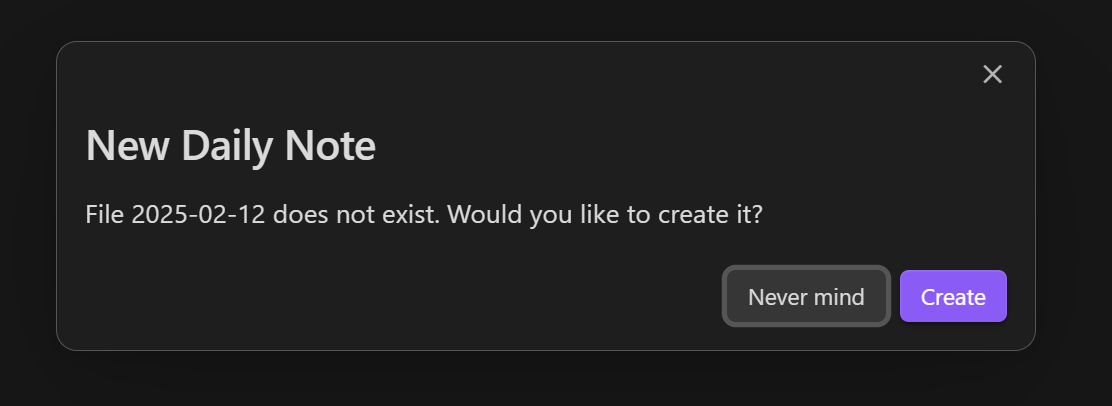 또한, 캘린더 플러그인은 글을 쓰지 않은 날짜를 클릭할 경우 노트를 생성할지를 물어봅니다. "오늘의 일일 노트 열기"를 약간 응용한 버전이라고 생각하면 좋습니다. 혹은 다음주에 쓸 내용을 미리 작성하거나 추후 설명하는 Tasks 플러그인과 함께 사용하면 좋습니다.