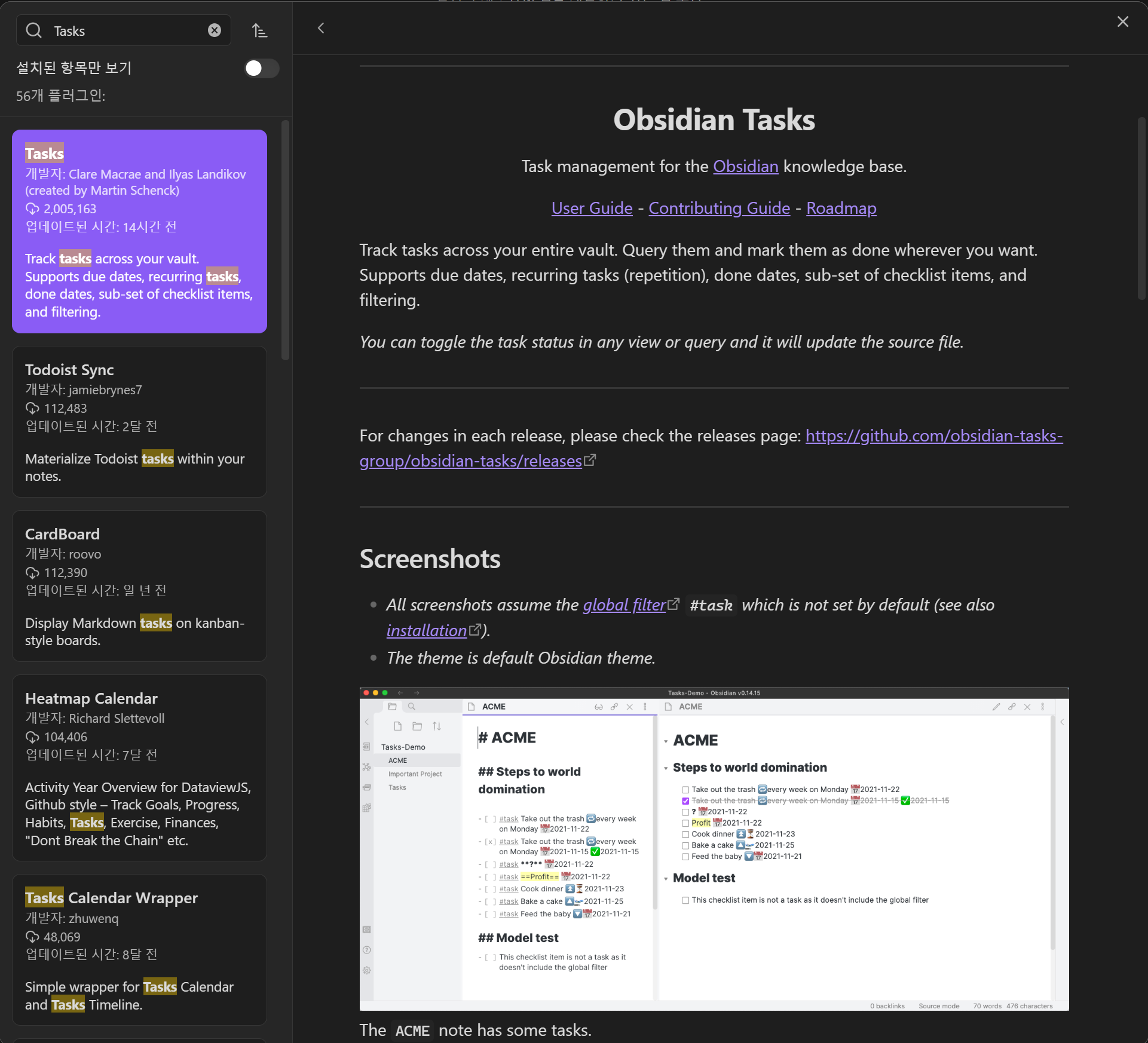 Tasks 플러그인은 다양한 방식으로 운영할 수 있습니다. 제가 즐거하는 방식은 다음과 같습니다.