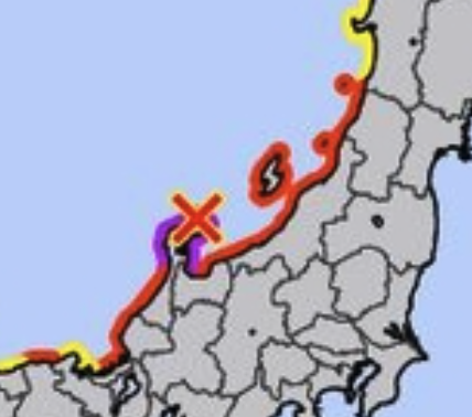 아래는 일본에서 발표한 쓰나미 경고가 발령된 지역입니다.