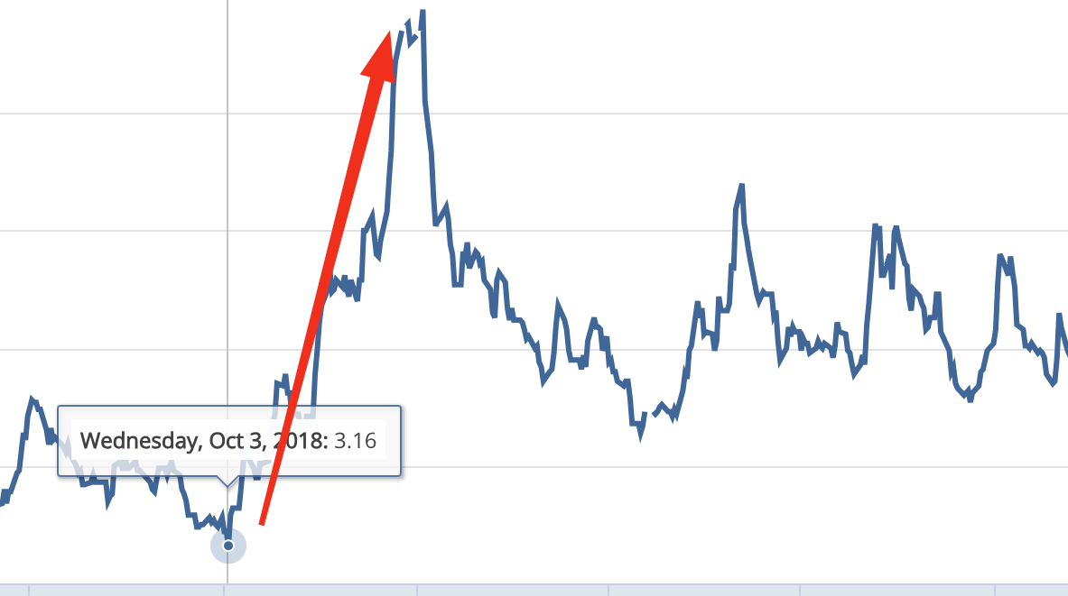 2018년도 10월 3일 - 미연준 파월 의장의 긴축의지 발표 (당시 스프레드 316bp)