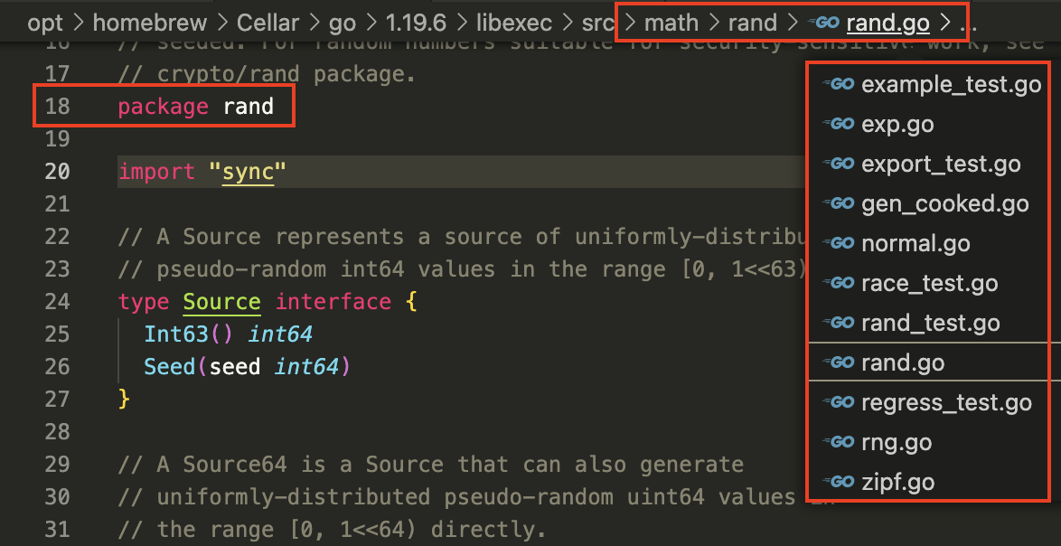 rand 폴더 하위의 모든 파일(_test.go 파일들은 제외)들은 모두 rand 패키지입니다.