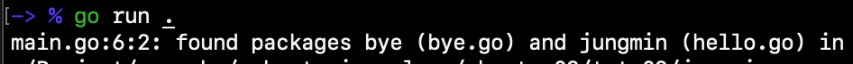 main.go:6:2: found packages bye (bye.go) and jungmin (hello.go) in