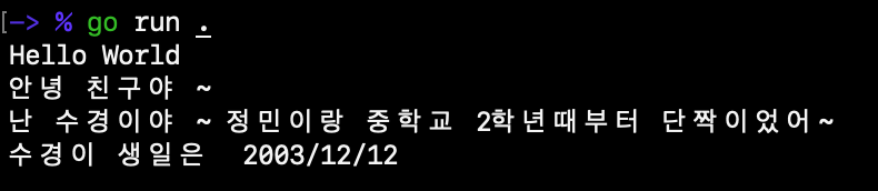 그리고 main.go 에서 수경이의 생일을 출력해볼까요?