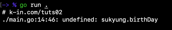 그리고 main.go 로 돌아와 sukyung.BirthDay 라고 고치면 코드가 다시 동작합니다.