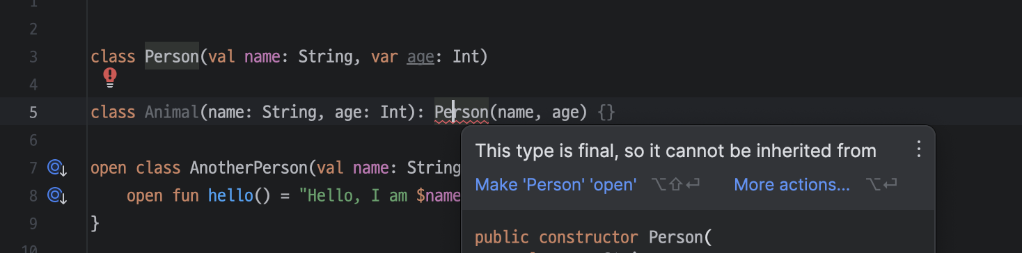 만약, open 키워드를 지정하지 않은 클래스를 상속하려고 한다면 아래와 같은 에러가 발생합니다.