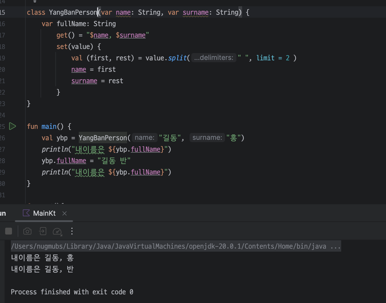 또한, val, var 키워드를 통해 수정 가능여부를 지정할 수 있습니다.