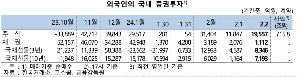 - 주식 순매수 +19,557억원 (코스피 +18,946억원, 코스닥 +611억원)