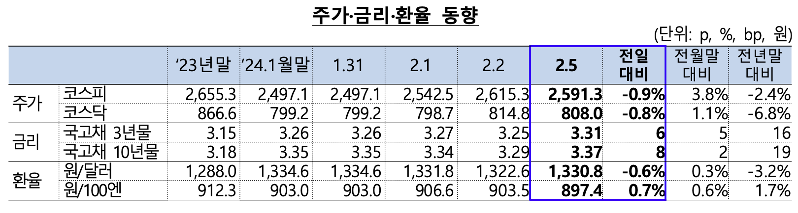 이상으로 24.02.05 장마감 후 금융·외환시장 동향 요약이었습니다.